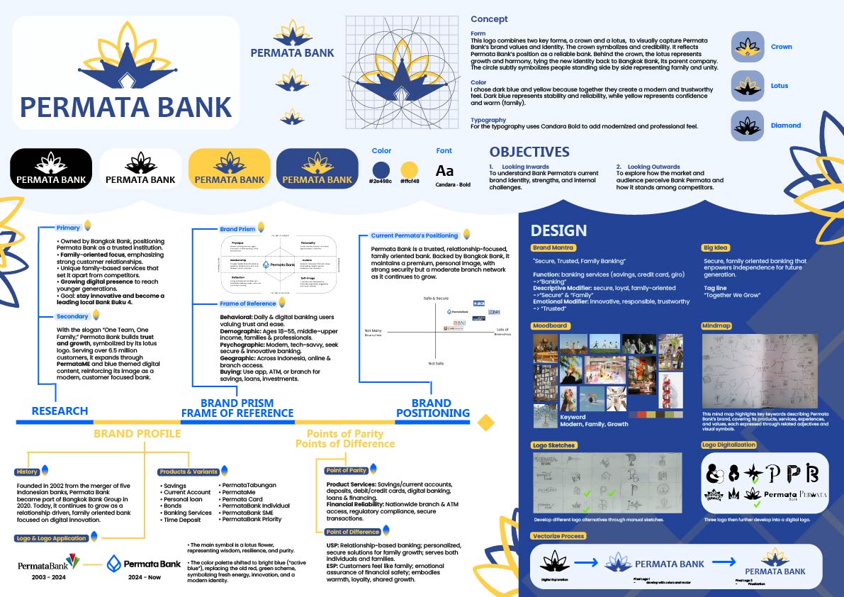 A college project where I redesign the logo of Permata Bank to fit their goals and values by identifying their brand identity and made a new big idea.